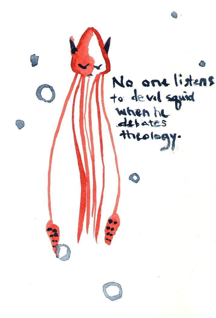 devil squid Posted on January 18, 2011August 30, 2011 by Caroline Hobbs theologian No one listens to me either. Sucks being an atheist right? Share this: Click to share on Facebook (Opens in new window) Facebook Click to share on Reddit (Opens in new window) Reddit Like Loading... Related