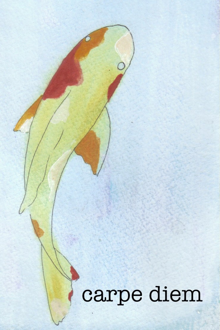 carpe diem Posted on June 27, 2011August 30, 2011 by Caroline Hobbs get it? carpe? carp? Do something with your fucking life already. Share this: Click to share on Facebook (Opens in new window) Facebook Click to share on Reddit (Opens in new window) Reddit Like Loading... Related