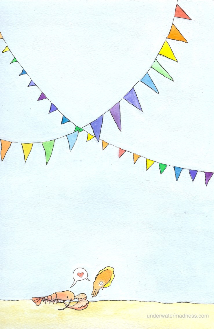 Summer Love August 17, 2012 Caroline HobbsLeave a comment Summer is still awesome. At the end of this summer fling, I’m sure the cuttlefish will be enjoying some hot buttered lobster. And then she’s going to eat him!