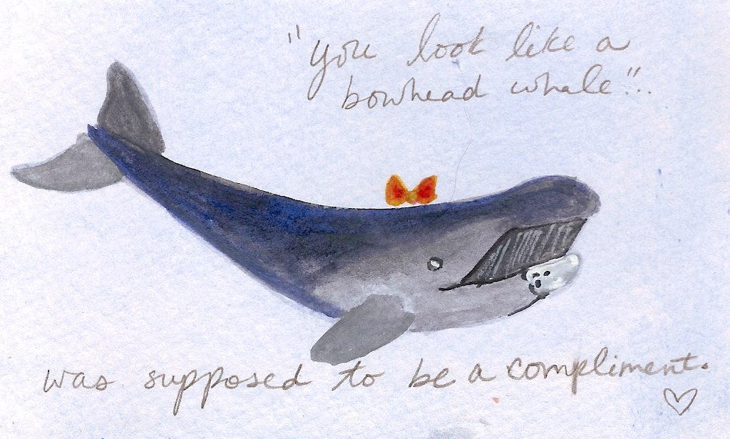 bowhead whale is not going to put out September 12, 2011 Caroline Hobbs5 Comments Bowhead whales obviously wear bows, or they wouldn't have that stupid name. This is why I never get laid.